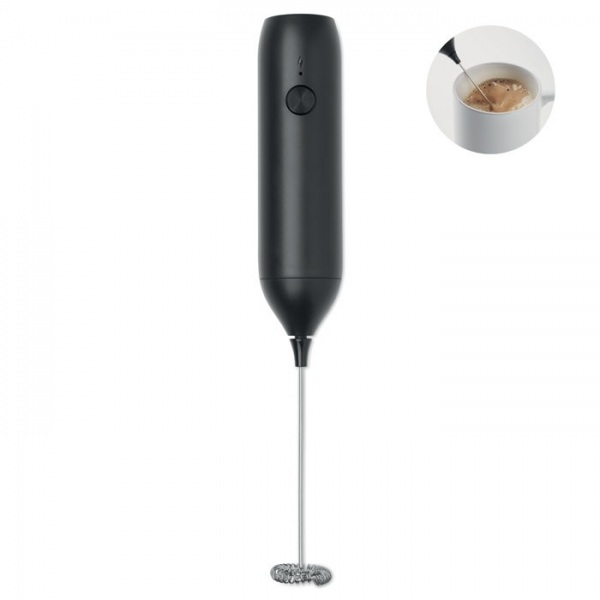 Ručný elektrický napeňovač mlieka z ABS s matným povrchom. Batéria 500 mAh. Dobíjanie cez USB-C kábel, ktorý je súčasťou balenia. Otáčky: 10000 otáčok/min.