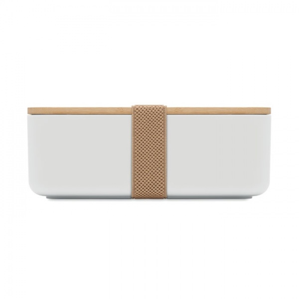 100% PLA kukuričný obedár s bambusovým vekom a RPET elastickým páskovým uzáverom. Objem: 1000 ml.