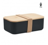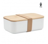 100% PLA kukuričný obedár s bambusovým vekom a RPET elastickým páskovým uzáverom. Objem: 1000 ml.