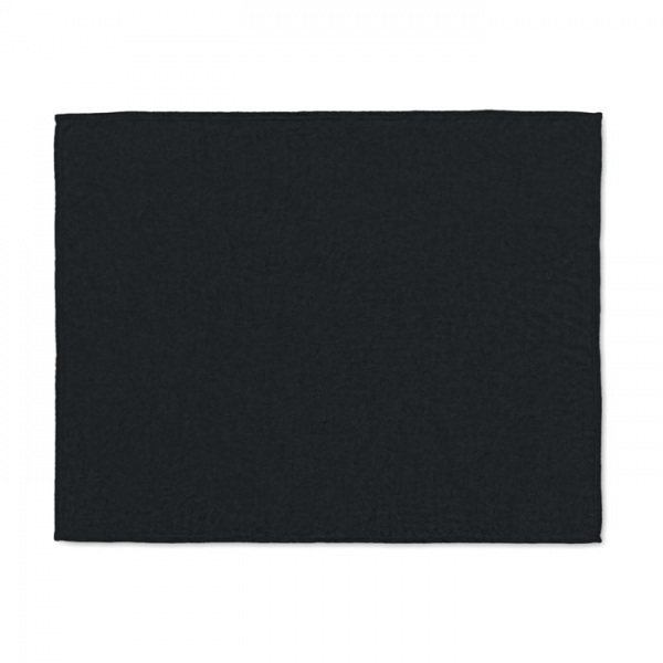 RPET flanelová flísová deka zabalená do stuhy s kartičkou pre potlač.