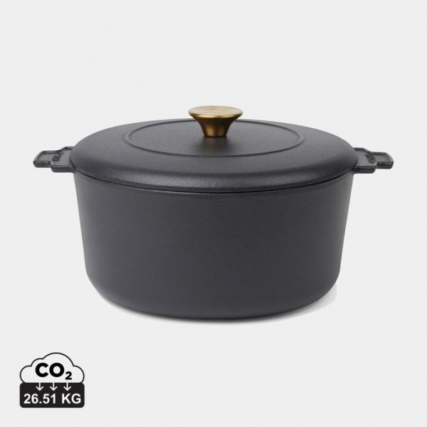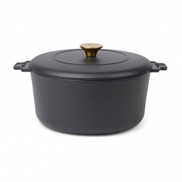 Hrniec z masívnej liatiny, potiahnutý smaltom. Pevné rukoväte, mierne textúrované vnútro. Vďaka vynikajúcim tepelným vlastnostiam je ideálny na pomalé varenie a dusenie. Kompatibilný so všetkými typmi varných dosiek, vrátane indukcie.