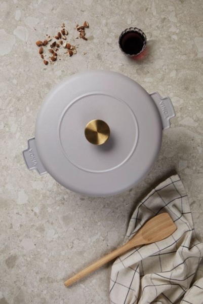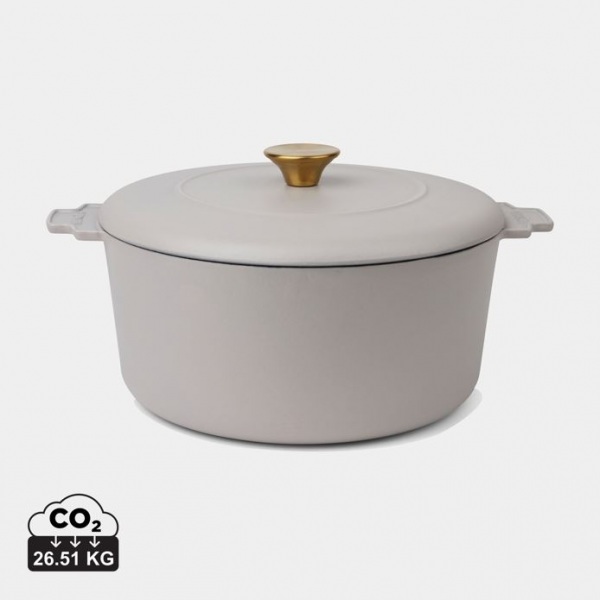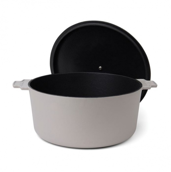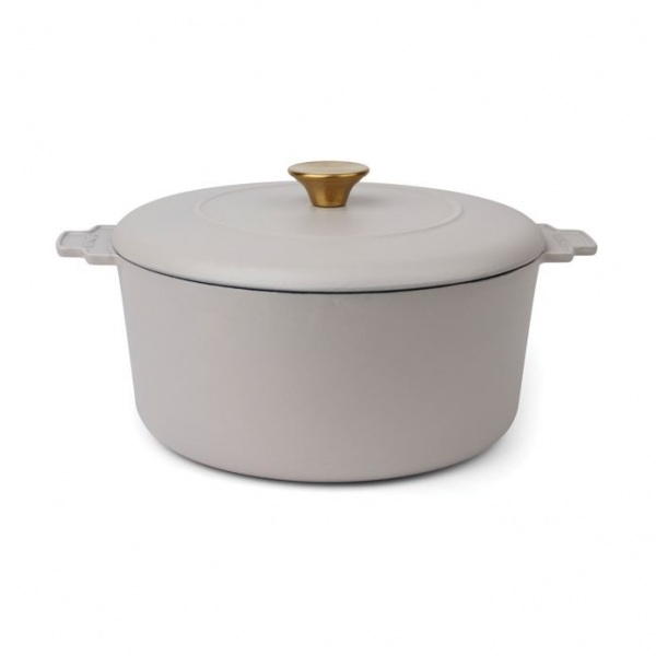 Hrniec z masívnej liatiny, potiahnutý smaltom. Pevné rukoväte, mierne textúrované vnútro. Vďaka vynikajúcim tepelným vlastnostiam je ideálny na pomalé varenie a dusenie. Kompatibilný so všetkými typmi varných dosiek, vrátane indukcie.