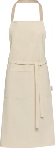 Zástera z 100% recyklovanej bavlny s certifikáciou GRS s gramážou 200 g/m?. Zástera s 2 vreckami vedľa seba o celkovej veľkosti 45 × 20 cm a 1 meter dlhým úväzom.