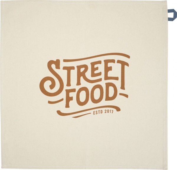 Kuchynská utierka vyrobená zo 100% recyklovanej bavlny s certifikáciou GRS o gramáži 200 g/m? s výrazným pútkom v kontrastnej farbe. Veľkosť utierky: 50 x 50 cm.