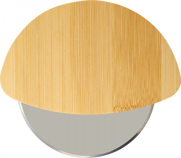 Krájač na pizzu s bambusovou rukoväťou a čepeľou z nerezovej ocele.