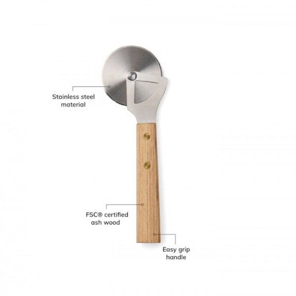 Krájač na pizzu v škandinávskom štýle je vyrobený z jaseňového dreva s certifikátom FSC® a vysoko kvalitnej nerezovej ocele a zaisťuje presné a ľahké krájanie pizze alebo akéhokoľvek pokrmu, ktorý vyžaduje presné krájanie.