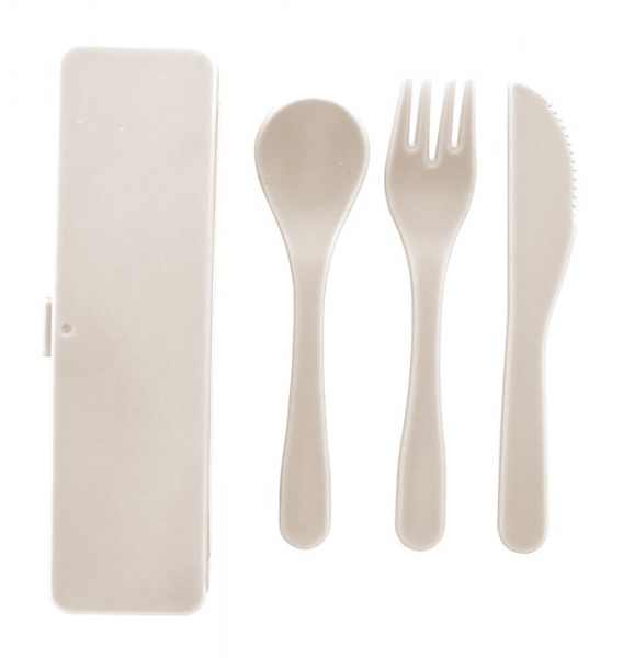 3 ks PP plastové príbory vo farebnom puzdre. Vrátane vidličky, noža a lyžice.
