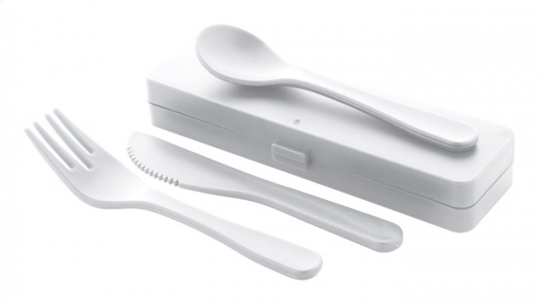 3 ks PP plastové príbory vo farebnom puzdre. Vrátane vidličky, noža a lyžice.