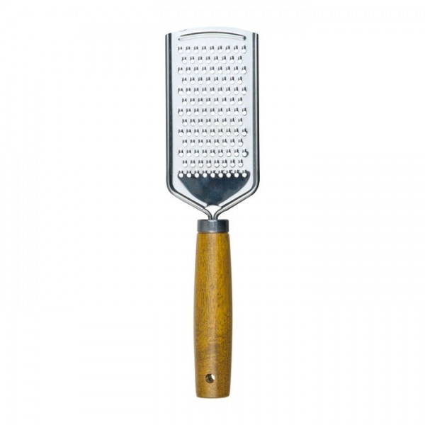 Strúhadlo na parmezán z nehrdzavejúcej ocele s drevenou rukoväťou.