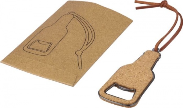 Korkový otvárač na fľaše s nerezovou oceľou a obojstrannými korkovými detailmi. Súčasťou balenia je PU šnúrka. Jednotlivo balené v hnedom papierovom obale.