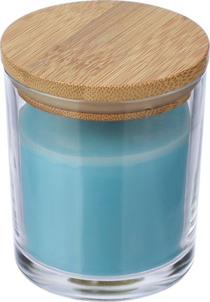 Sklenená sviečka so 120 gramami farebného vosku a vanilkovou vôňou, uložená v priehľadnej sklenenej nádobe s bambusovým viečkom. Poskytuje približne 20 hodín horenia. Jednotlivo balená v bielej kartónovej tube.