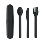 Sada opakovane použiteľných príborov s puzdrom z PLA kukurice. Každá sada obsahuje vidličku, nôž, lyžicu a praktické prenosné puzdro na príbory.