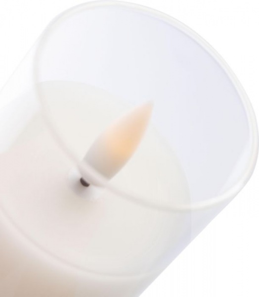 PP LED vosková sviečka v sklenenom držiaku s realistickým efektom plameňa. Súčasťou balenia je batéria a ponúka približne 100 hodín svietenia. Určená na vnútorné použitie. Jednotlivo balená v hnedej kartónovej krabici.
