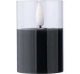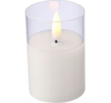 PP LED vosková sviečka v sklenenom držiaku s realistickým efektom plameňa. Súčasťou balenia je batéria a ponúka približne 100 hodín svietenia. Určená na vnútorné použitie. Jednotlivo balená v hnedej kartónovej krabici.