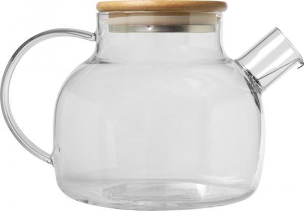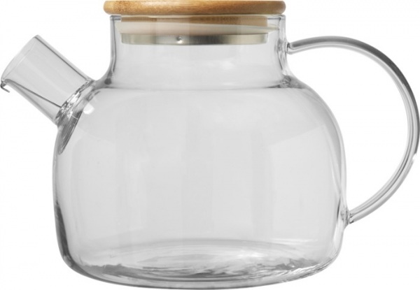 Čajová kanvica z borosilikátového skla s bambusovou pokrievkou a nerezovým sitkom na čaj. Farba sa vzhľadom na povahu bambusového materiálu môže mierne líšiť. Objem: 1000 ml.