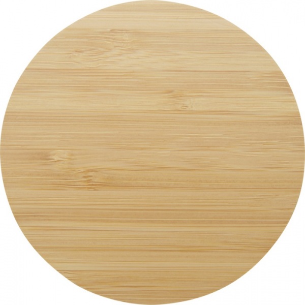 krúhly podtácok vyrobený z bambusu pochádzajúceho z udržateľnejších a spoločensky zodpovednejších zdrojov. Veľkosť: 8,5 x 0,5 cm.