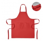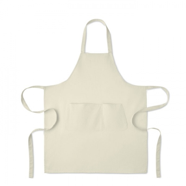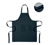 Nastaviteľná zástera s 1 veľkým predným vreckom s 2 priehradkami z organickej bavlny s gramážou 240 g/m2. S nastaviteľným gombíkom na krčnom popruhu. Tento výrobok má certifikát OEKO-TEX® STANDARD 100.