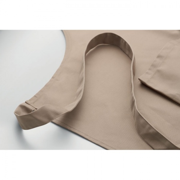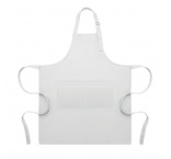 Dlhá nastaviteľná kuchynská zástera z polybavlny s gramážou 240 g/m2 (35 % bavlna, 65 % polyester) s dvoma prednými vreckami a nastaviteľným popruhom s kovovou prackou.