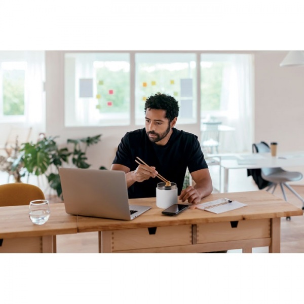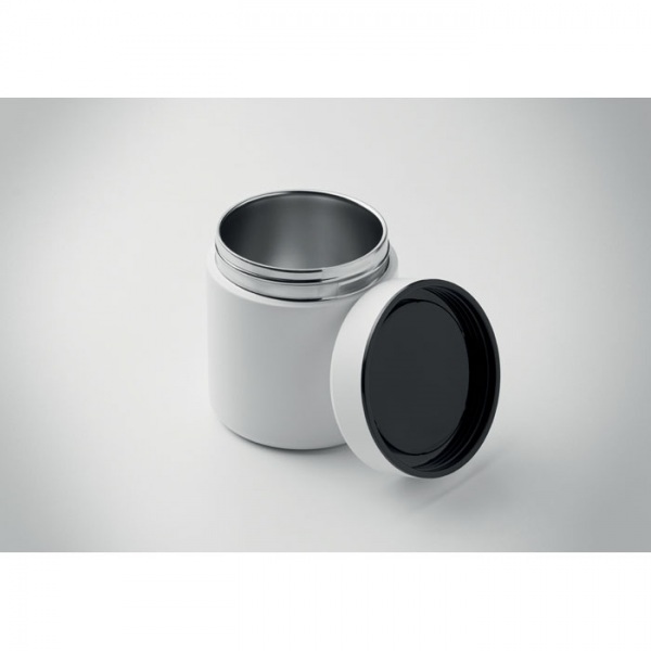 Dvojstenná izolovaná nádoba na obed vyrobená z 90 % recyklovanej nehrdzavejúcej ocele a 10 % nehrdzavejúcej ocele s PP viečkom. Objem: 500 ml.
