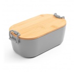 Vzduchotesný plastový obedár s bambusovým vekom a bočnými bezpečnostnými prackami. Možno umývať v umývačke riadu a používať v mikrovlnnej rúre, pričom je potrebné odstrániť veko. Objem až 1 L.