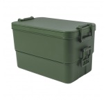 Box na jedlo z PP plastu so sadou príborov (vidlička, lyžica a nôž), zapínaním na pracku a 2 priehradkami (1000 ml a 800 ml). Stohovateľný design pre kompaktné skladovanie.