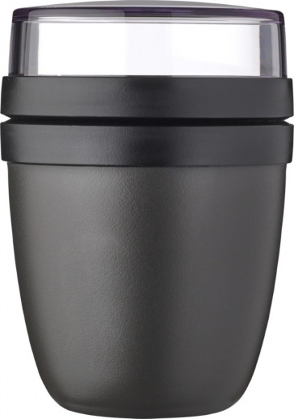 Horná priehľadná nádoba pojme 120 ml, čo je ideálne na približne 50 g müsli alebo ovocia, a spodná nádoba má objem 300 ml. Dobre tesní a je vhodná do umývačky riadu. Neobsahuje BPA.