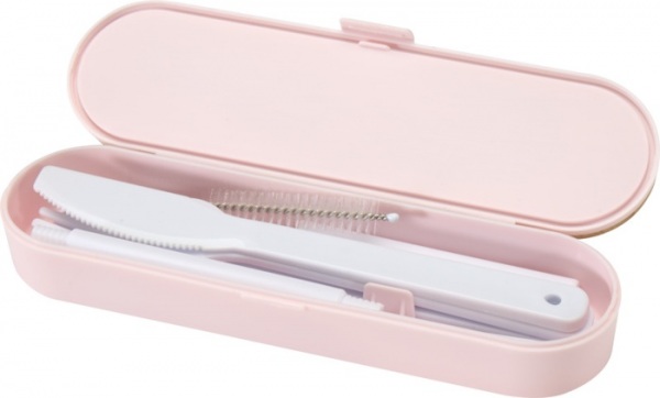 Súprava opakovane použiteľného príboru s bambusovým vekom, ktorá obsahuje vidličku, nôž, lyžicu, slamku a čistič slamky. Je kompaktný a ľahko sa čistí, takže je ideálny na použitie do desiatových boxov, pri cestovaní alebo v kancelárii.