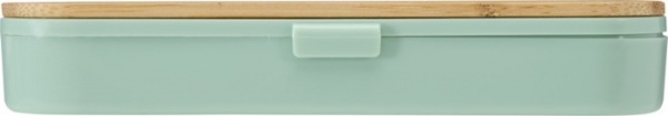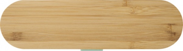 Súprava opakovane použiteľného príboru s bambusovým vekom, ktorá obsahuje vidličku, nôž, lyžicu, slamku a čistič slamky. Je kompaktný a ľahko sa čistí, takže je ideálny na použitie do desiatových boxov, pri cestovaní alebo v kancelárii.