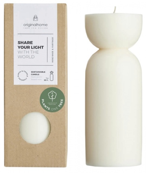 Bio sviečka ručne vyrobená z rastlinného vosku bez parafínu. Sviečka je bez parfumácie, má knôt zo 100% bavlny a horí čisto. Každý nákup podporí špeciálny fair-trade projekt na Jáve v Indonézii. Doba horenia sviečky: 88 hodín.
