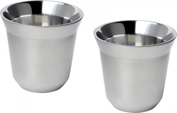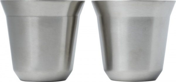 Súprava 2 dvojplášťových šálok na espresso z nerezovej ocele s certifikáciou RCS. Objem 80 ml. Dodáva sa v darčekovej krabičke z recyklovanej lepenky.