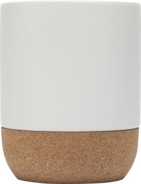 Keramický hrnček (300 ml) s korkovým prvkom a špeciálnou povrchovou úpravou na vonkajšej stranepre sublimáciu. Lesklý biely vnútorný a vonkajší náter. Ručné umývanie teplou vodou. Dodáva sa v krabičke z recyklovanej lepenky.