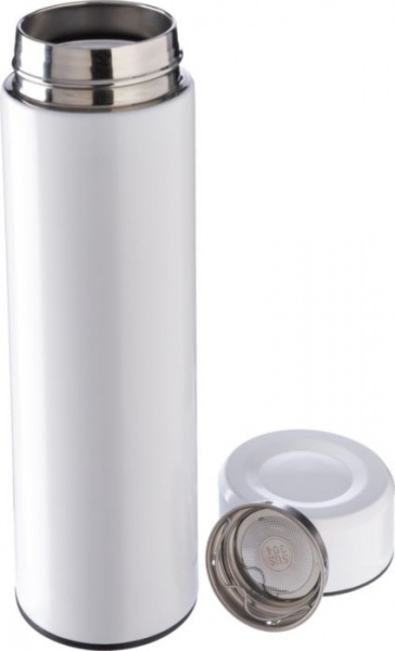 Nerezová dvojplášťová fľaša na pitie (425 ml) so zabudovaným odnímateľným čajovým sitkom. Vnútro je vyrobené z nehrdzavejúcej ocele 304 a exteriér z nehrdzavejúcej ocele 201. Jednotlivo balené v hnedej kartónovej krabici.