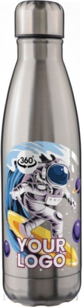 Termoska z recyklovanej nerezovej ocele (500 ml) so skrutkovacím uzáverom. Vnútro je vyrobené z nehrdzavejúcej ocele 304 a vonkajšok je z nehrdzavejúcej ocele 201. Na banke je vyryté recyklované logo. Jednotlivo balené v hnedej kartónovej krabici.