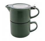 Vysoko kvalitná keramická čajová sada s matným povrchom. Vrátane kanvice na čaj (430 ml) s viečkom z nerezovej ocele a sitkom na čaj, navrhnutá pre úhľadné stohovanie na zodpovedajúci hrnček (400 ml). V krabičke z kraftového papiera.