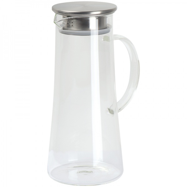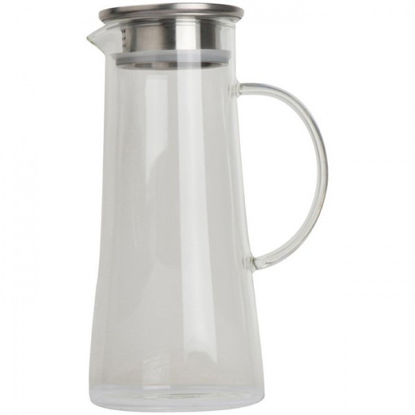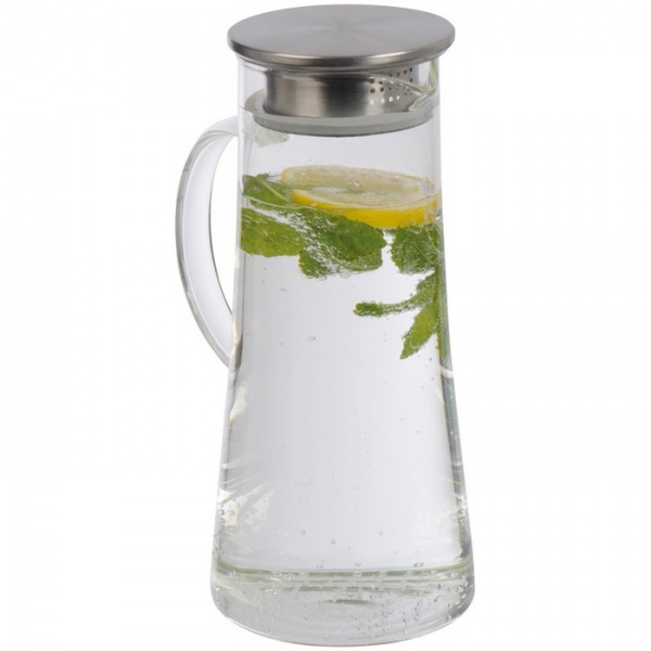 Sklenená karafa s viečkom z nerezu, objem 1400ml. Otvára sa 2 spôsobmi: celé viečko alebo len čiastočne po sitko.