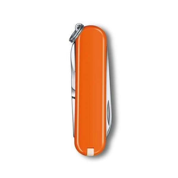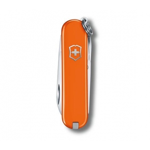 Originálny švajčiarsky vreckový nôž je vybavený funkciami: zatváracia čepeľ, pilník na nechty, čistič nechtov, nožničky, pinzeta, špáradlo, krúžok na kľúče.