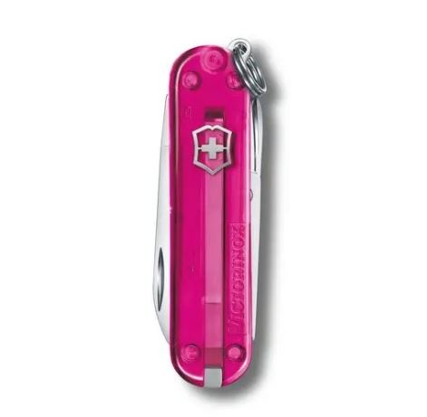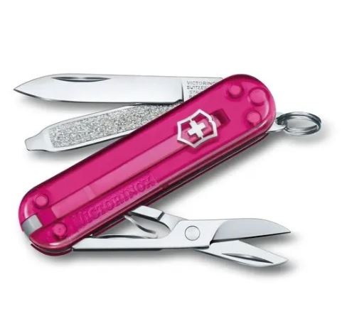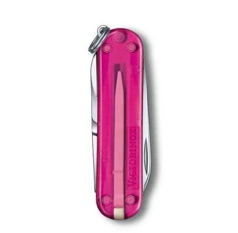 Originálny švajčiarsky vreckový nôž je vybavený funkciami: zatváracia čepeľ, pilník na nechty, čistič nechtov, nožničky, pinzeta, špáradlo, krúžok na kľúče.