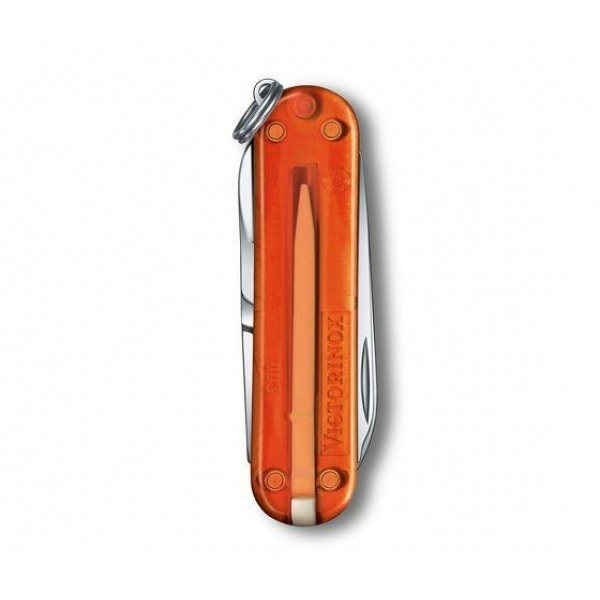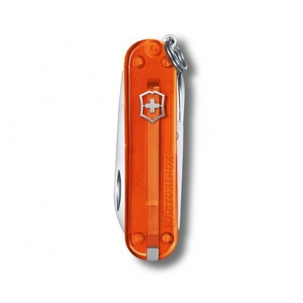 Originálny švajčiarsky vreckový nôž je vybavený funkciami: zatváracia čepeľ, pilník na nechty, čistič nechtov, nožničky, pinzeta, špáradlo, krúžok na kľúče.