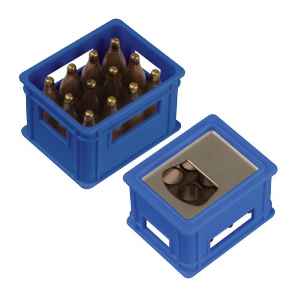 Plastový otvárač na fľaše v tvare pivovej debničky.