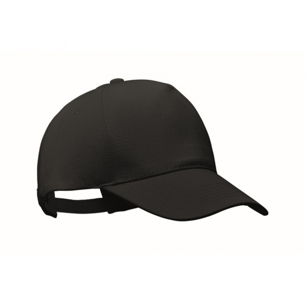 5-panelová šiltovka z brúsenej organickej bavlny s nastaviteľným pásikom a zapínaním na kovovú pracku vzadu.