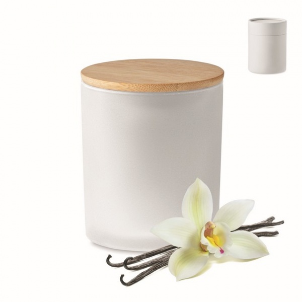 Vonná sviečka na rastlinnej báze v matnom sklenenom svietniku s viečkom. 280 gr. Doba horenia: cca 46 hodín. Dodávané v darčekovom papierovom tubuse.