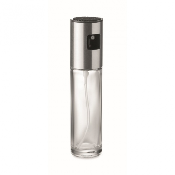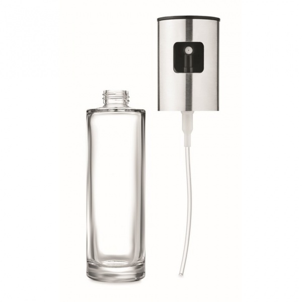 Sklenený dávkovač oleja v spreji s viečkom z nerezovej ocele. Objem: 100 ml.