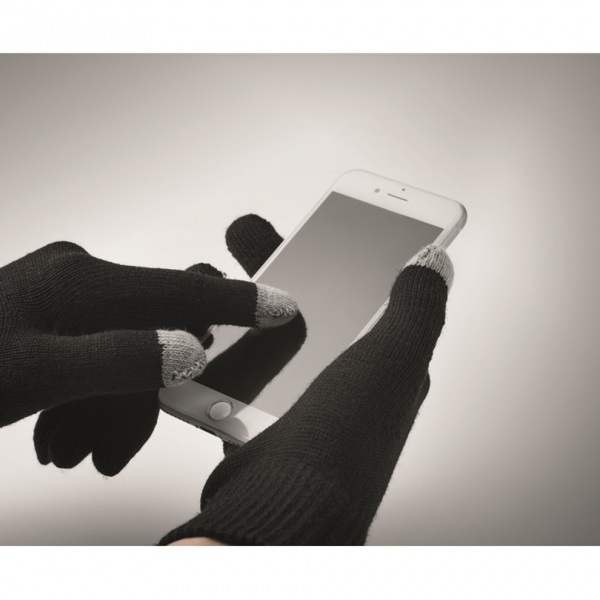 Súprava 3 kusov zimných doplnkov. Obsahuje čiapku, šál a hmatové rukavice so štítkom na potlač. Vyrobené z RPET.