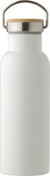 Nerezová dvojstenná fľaša na pitie (500 ml) s bambusovým skrutkovacím uzáverom.