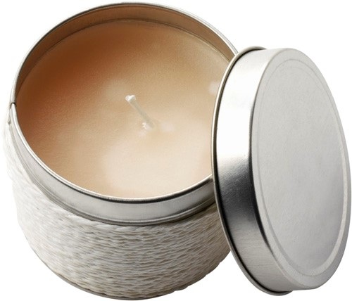 Vonná sviečka v plechovej škatuľke. Arómy: vanilka, káva a škorica.
