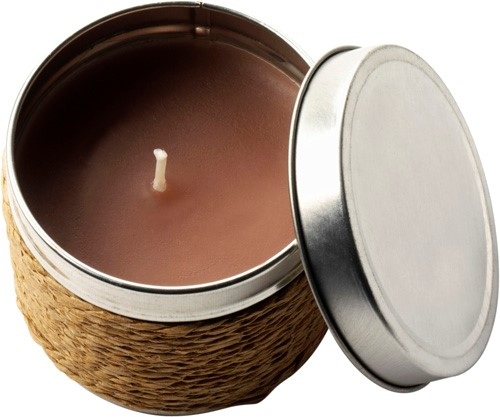 Vonná sviečka v plechovej škatuľke. Arómy: vanilka, káva a škorica.