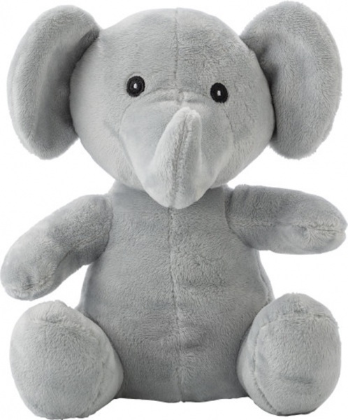 Plyšová hračka s vyšitými očami, nosom a ústami. Vrátane tagu na potlač.