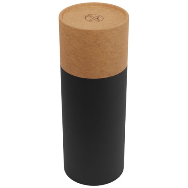 Dvoustěnná vakuově izolovaná nerezová a bambusová láhev s teplotním senzorem na víku, který zobrazuje teplotu nápoje uvnitř láhve (stupně Celsia). Udrží nápoj horký po 8 hodin a studený po 12 hodin. Dodává se s čajovým filtrem. Kapacita: 500 ml.