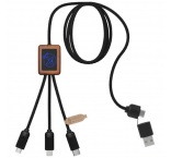 Nabíjecí kabel 5v1 z RPET se svítícím logem a hranatým bambusovým pouzdrem. Svítící logo je viditelné na obou stranách. Má 3 konektory (typ C, micro USB, iPhone) a duální USB konektor pro univerzální použití. Délka kabelu: 1 metr.