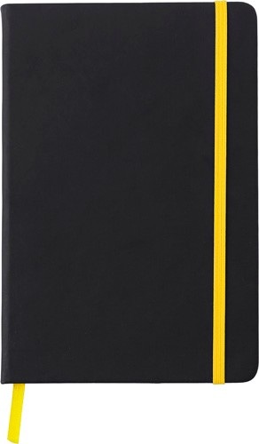 Zápisník A5 s 96 stranami, záložkou zo stužky a elastickou gumičkou.
